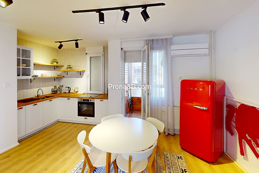 Banesa ndodhet në katin e 4-të të kompleksit banesor, në një nga lokacionet më të mira në Prishtinë. E pozicionuar në rrugën Robert Doll, pranë lagjes Pejton, kjo banesë ofron qasje të shpejtë në qendër si dhe komoditet për banim...